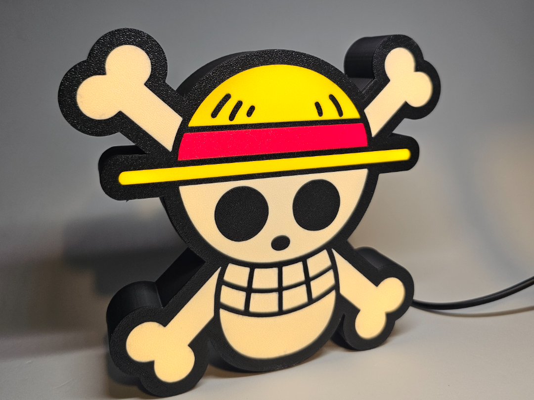 Lámpara plana retroiluminada inspirada en One Piece. Diseño decorativo con iluminación LED, ideal para habitaciones y espacios creativos.